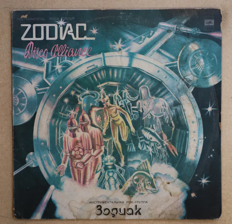 Spaced out cosmic synth / minimal synth disco instrumental classic out of Russia. Dirt on cover, fading of the colour on front, bite on top mouth, mini peel off & beige water damage wear on front, small tear & ringwear on back, very reasonable to no noise depending on parts, rangs from solid VG- to VG++.