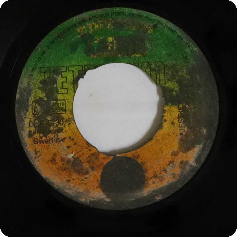 Scarce single only downtempo soukous tune out of Kenya. Strong wear on labels. Record is VG- w/ reasonable to light noise from marks, and multiple clicks on part 2 of B side from a deeper mark