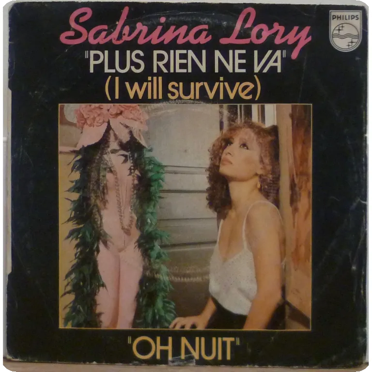 Disco double sider recorded by this French Cabaret dancer, single only, tape along seams & spine, large writings & grey water damage on back, record is noisy on intro to A side frommarks otherwise plays nicely, varies from VG- to VG+