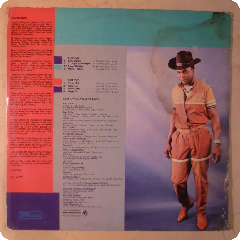 Cameroon lp featuring a cosmic boogie disco tune w/ synths & a discoish afro pop w/ solid dancefloor potential. Minor wear on cover, mini bite on top spine corner, record plays with light to hardly noticeable noise from marks depending on parts.