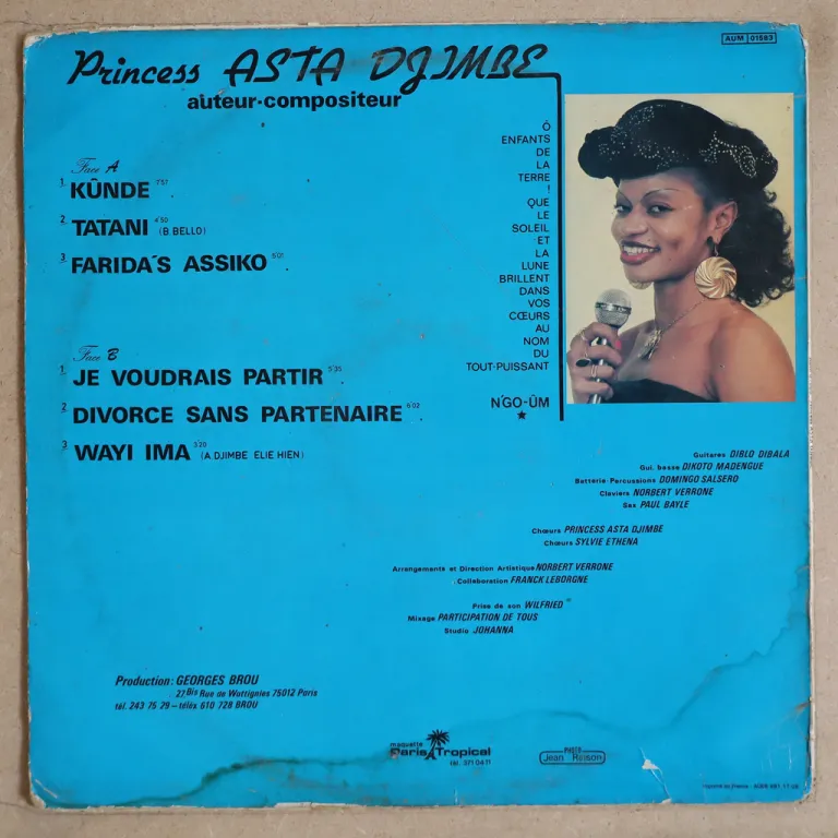 Dancefloor filler afro synth disco pop winner w/ vocals in French, now a classic among the afrosynth heads, also check the hypntoic afro synth title tune ! Dirt & aging on cover, light brown water damage along bottom, mini peel off on back, record has marks but still plays quite nicely on the 2 standout tunes, otherwise a little noisy inbetween tunes and on quiet parts, VG- to VG