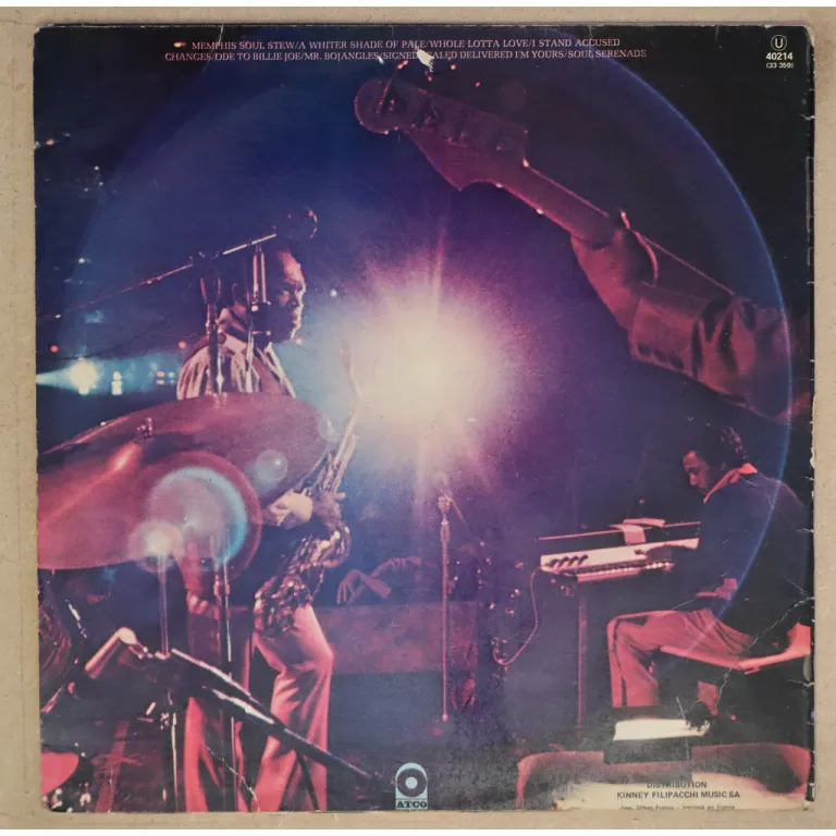 "Memphis soul stew" & more funky psych soul winners as recorded by the successful sax player, aging of the cover, 0,5" split on spine, mini peel off on back, dirt on labels, writing on A side label, record has numerous marks & constant reasonable to light noise, ranges from VG- to VG depending on parts.