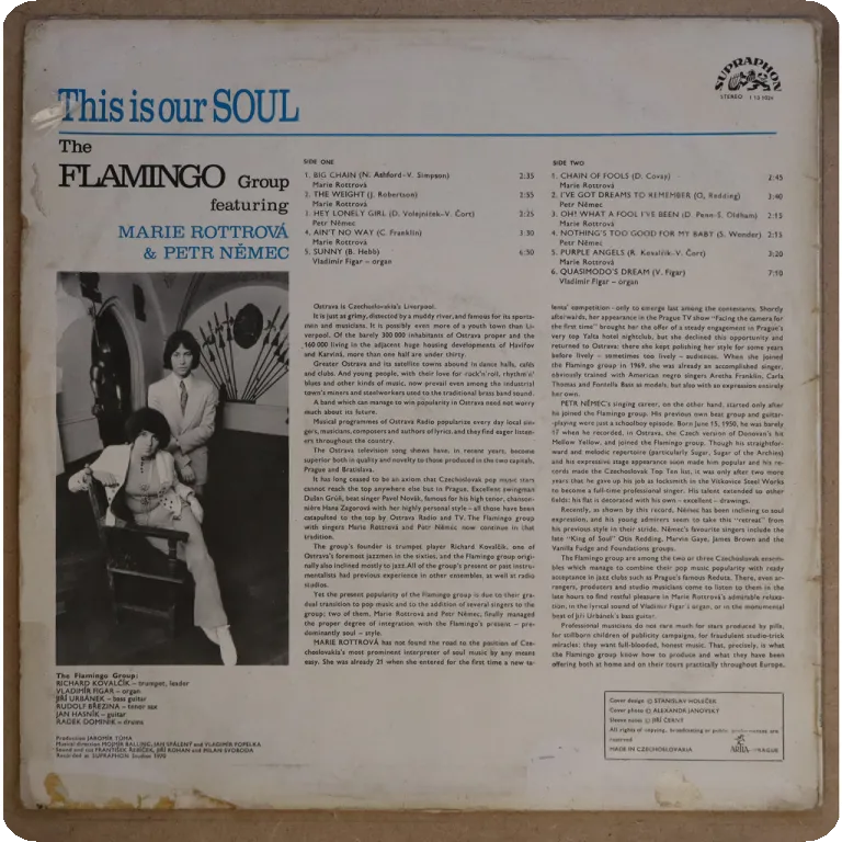 Instrumental soul jazz & hard soul cover winners of US classics by this Czechovslovakia group. Sleeve has aging & dirt, small bite, glue residues & small peel off of the upper plastic sheet on glossy