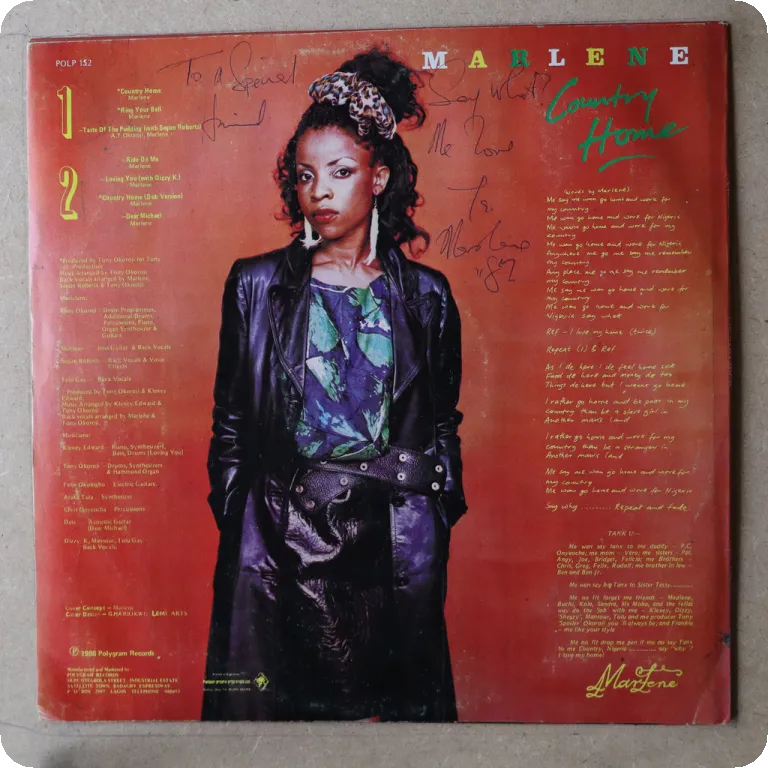 Oldies rap, electro funk & digital reggae Nigerian rarity. Autographed by the singer on back cover ! Minor wear on cover, occasionally noticeable light noise from thin marks & unremoveable dirt, still