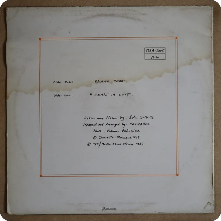 An afro disco soul tune & a tropical dancefloor tune on this French private release by Cameroon artist. Sleeve has minor wear, record plays very nicely despite light marks w/ only very occasionally