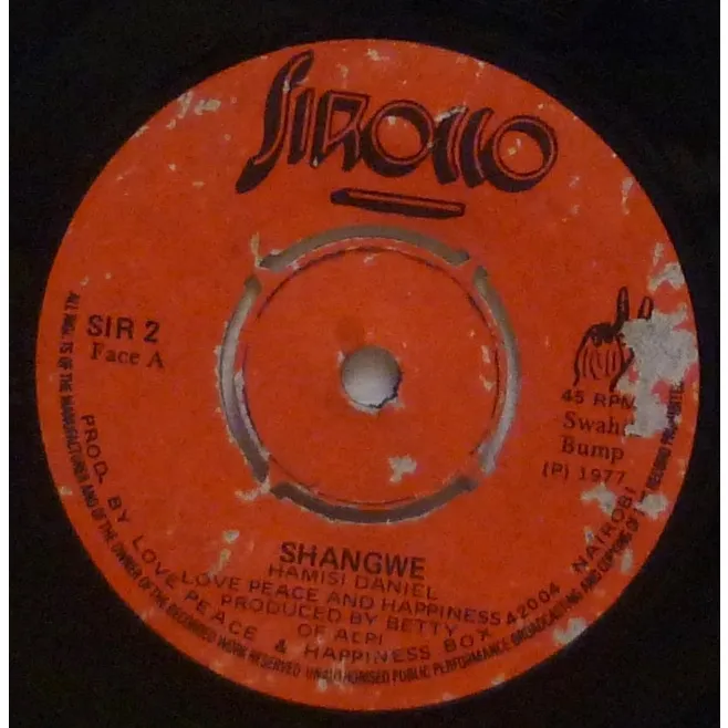 Afro funk / disco pop / hustle-bump tune w/ vibraphone & sexy female chorus from Kenya, East Africa. Peel off on labels, record has constant noise & clicks, a skip at the beginning of A side (clip 1) & 3 skips on the second part of A side