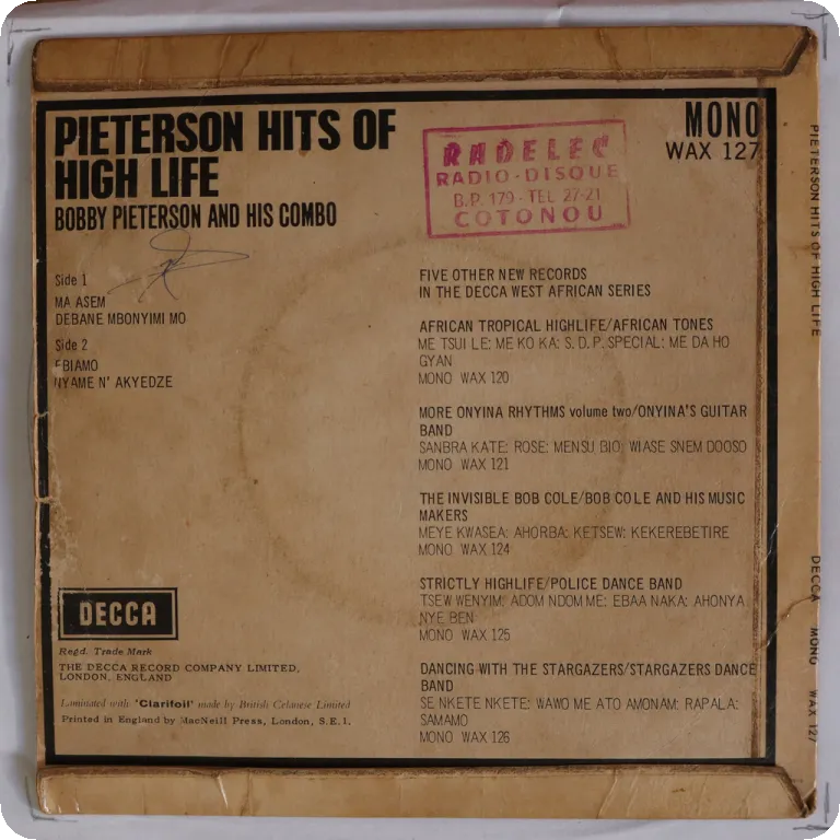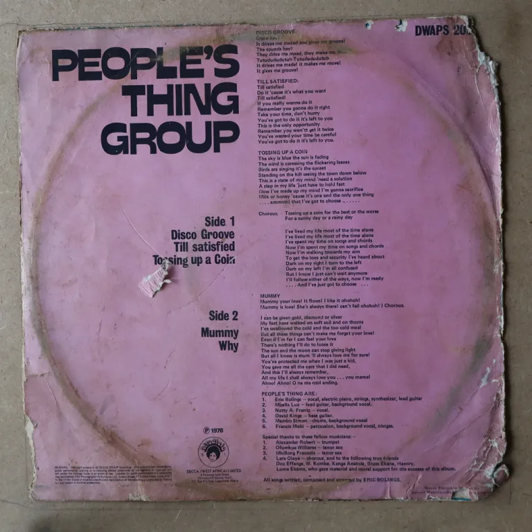 Impossible to find and indemand Nigerian boogie disco 2 tracker w/ killer organ work, simply never shows up, sold twice on discogs, never on ebay. Strong wear on cover, bites on spine & bottom mouth corners, strong ringwear, creases, tear on back, narrow bite on top, record has constant strong noise from numerous marks.
