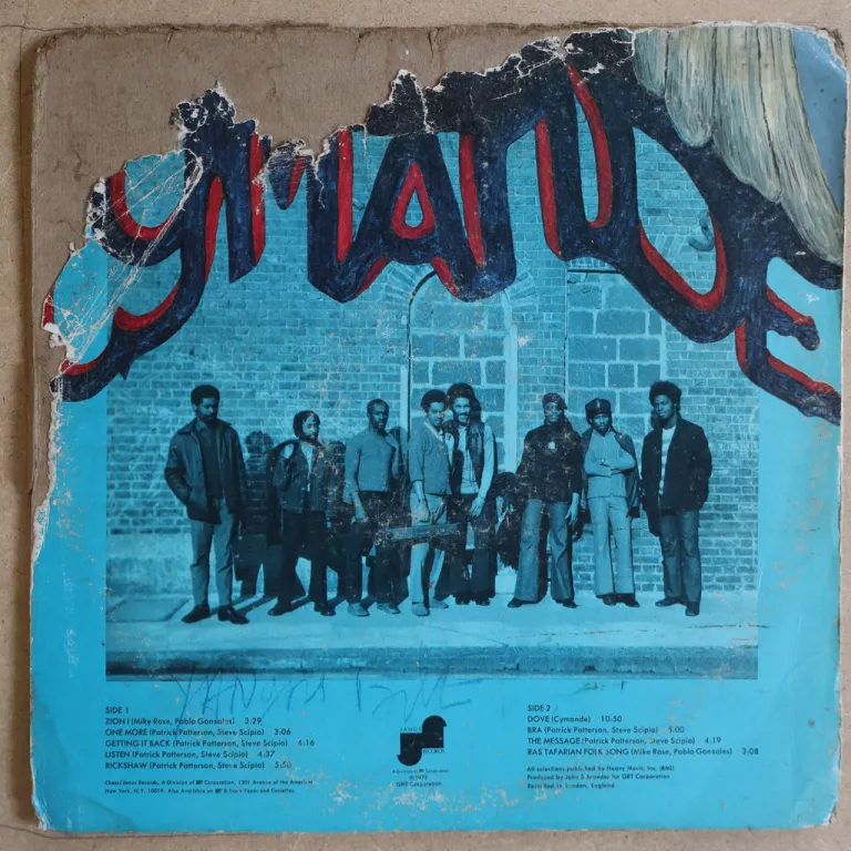 Bra, "The message, "Dove" on this timeless classic, sleeve has strong aging & wear, split on 75% of spine & all bottom to part 2 of gatefold & all top of cover, large writings on back cover & small ones on labels, record has numerous marks, reasonable to light noise, VG- to VG depending on parts but a skip on intro to A1 "dove" (clip 3).