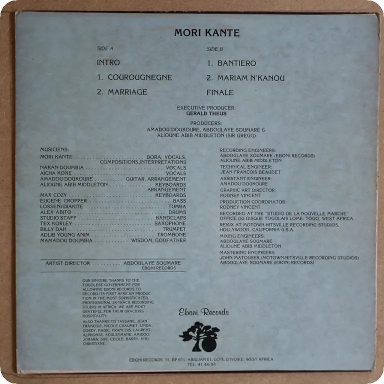 disco boogie "Bantiero" w/ cora instrument + title track on this masterpice by the legendary Guinea cora player & singer. Some wear on cover, record plays really nicely on the standout tune and looks