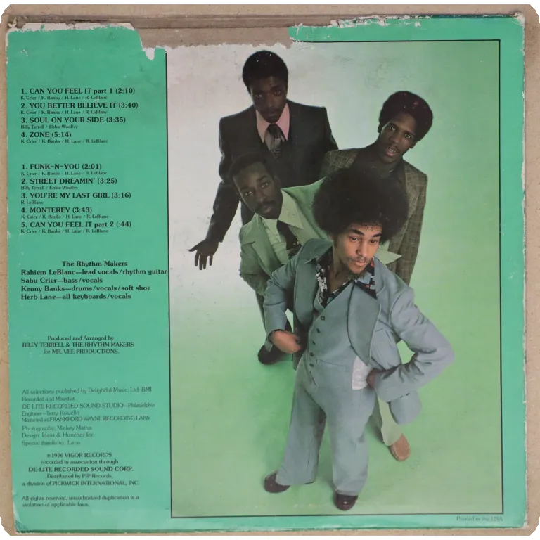 Instrumental & vocal funk, boogie & jazz funk disco winners on this Philly production. Sleeve has aging & dirt, peel off & 8" split on top, ringwear on front, record has minor occasional light noise