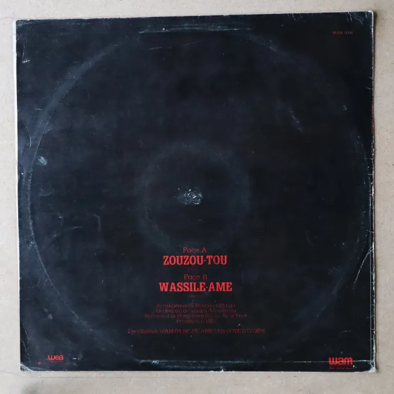 Afrobeat disco & boogie disco winners recorded in France by Ivory Coast's funkiest self produced artist. Sleeve has dirt wear, some aging, large peeling of the upper plastic sheet. Record has noise in